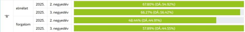 2025. 2. negyedév: elmélet 67,08 %, forgalom 48,44 %